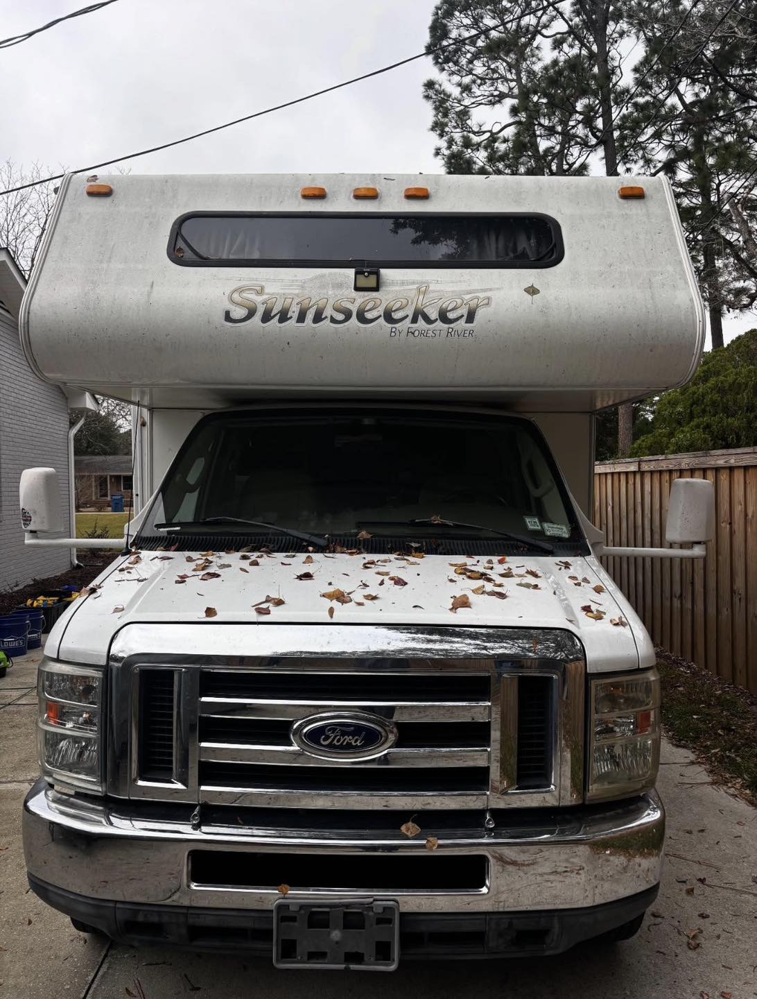 We use professional-grade products specifically designed for RV fiberglass, paint, metal, plastic, and rubber surfaces. These include safe cleaners, compounds, sealants, and protectants that restore and protect your RV.